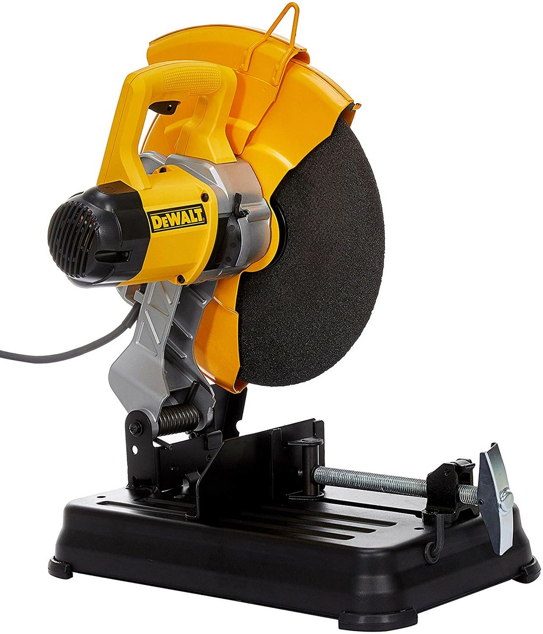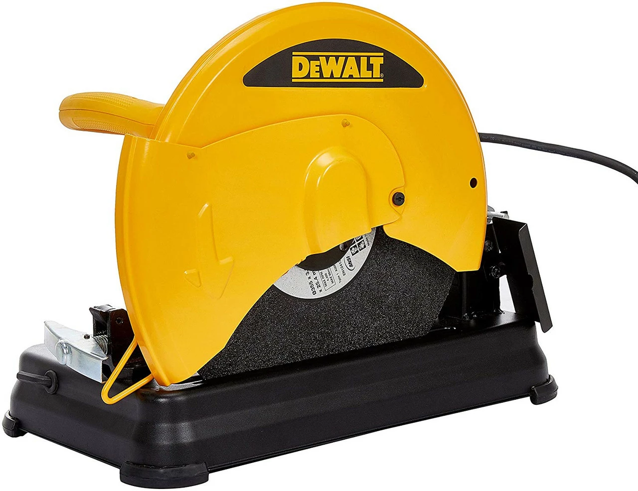 With this 14″ Dewalt Chop Saw the guiding notches give good cut line visibility during cuts. It is equipped with a powerful 1400 Watt motor that allows the saw to cut up to 6mm steel plate without the need for coolant. Parallel fence is provided as standard to help improve the accuracy of the cuts. The handy chip collection window allows user to identify when his collection chamber is full without having to open compartment to see inside. Compact in size and well balanced making it an easy to use circular saw with 63 mm depth of cut.