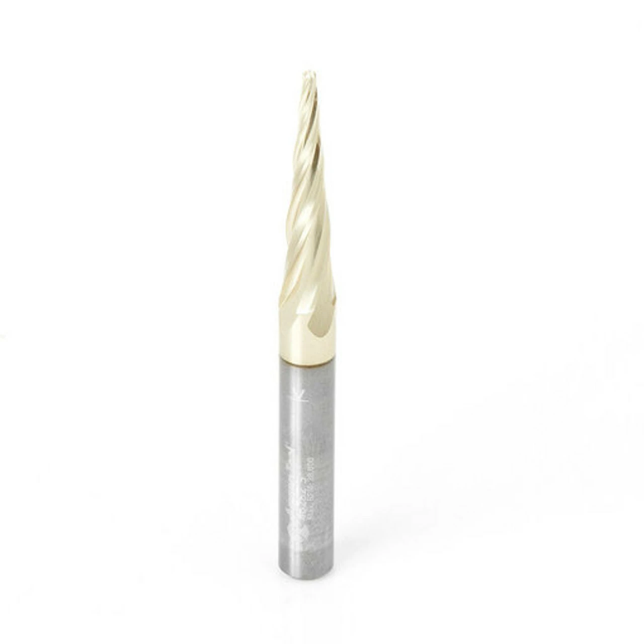 Solid Carbide Up-Cut Spiral ZrN Coated 5.4 Deg Tapered Angle Ball Tip 1/16 Dia x 1/32 Radius x 1 x 1/4 Shank