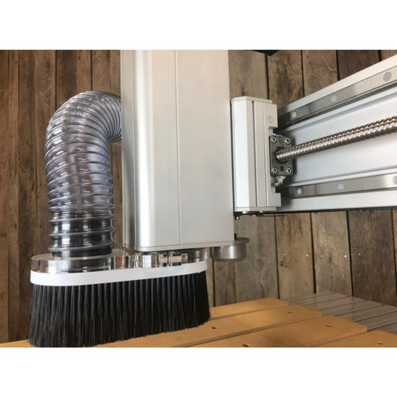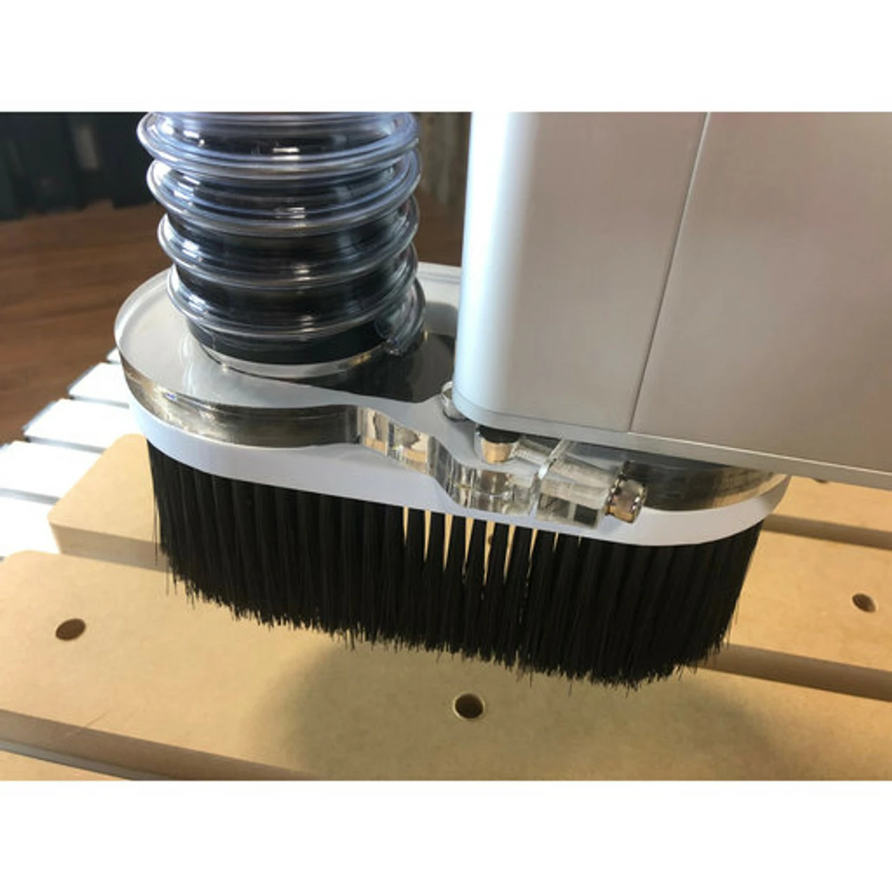 CNC dust extraction made simple with our most popular accessory, the Axiom Dust Shoe provides a nearly dust-free routing environment. Rare-earth magnet closure allows quick removal of the brush head to provide spindle access.