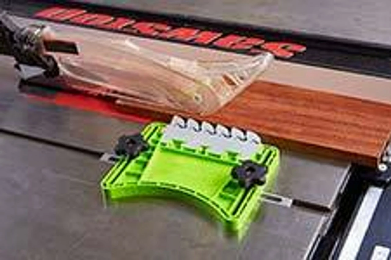 Currently the FeatherPro fits any table with a 3/8″ x 3/4″ Miter slot. The product ships with aluminum miter bars.