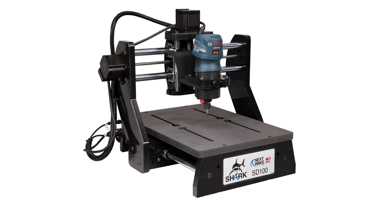 The SHARK SD100 is a compact, full function CNC machine capable of producing high quality 3D carvings and machiningβs in a large variety of mediums including wood, soft metals, plastics, and other solid surface materials.