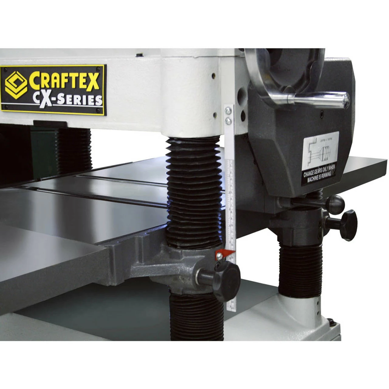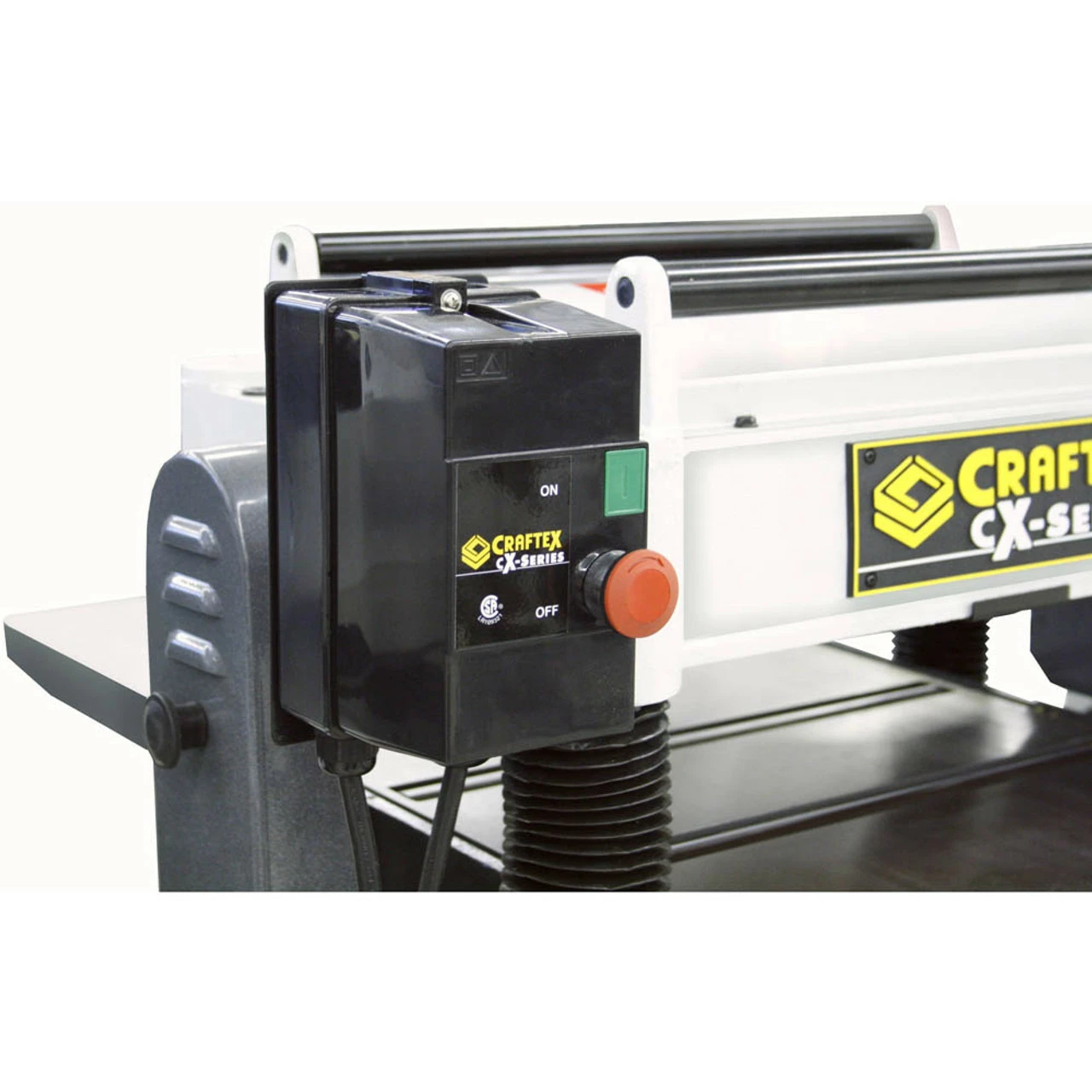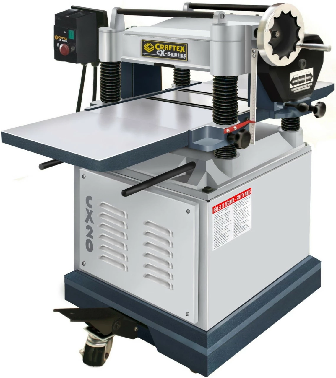 This planer will tackle just about any project you throw at it, all day, everyday. Features on this unit include a powerful 5HP motor, precision ground cast iron table and full cast iron extension wings, integrated mobile base for ease of mobility and overall heavy duty construction. Like all CX-Series machines, this unit features powder coated paint, sharp looking two tone colours and a full 3 year warranty.