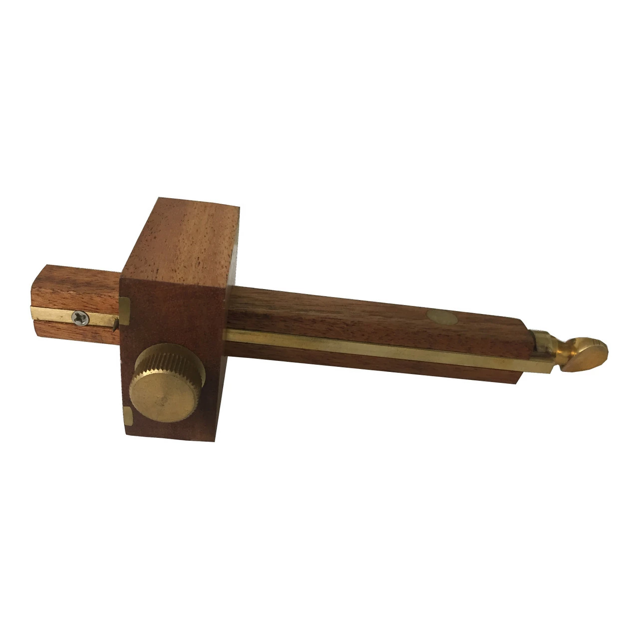 This Mortising Gauge is crafted from solid ebony and brass marking this gauge a great value. When it comes time to cut those mortises and the fine lines laid out by this gauge will guarantee precise results. One side of the beam has two pins for use as a mortise gauge when laying out the outlines of mortises and tenons, while the other side has a single pin for laying out the shoulders of tenons and other joinery elements.