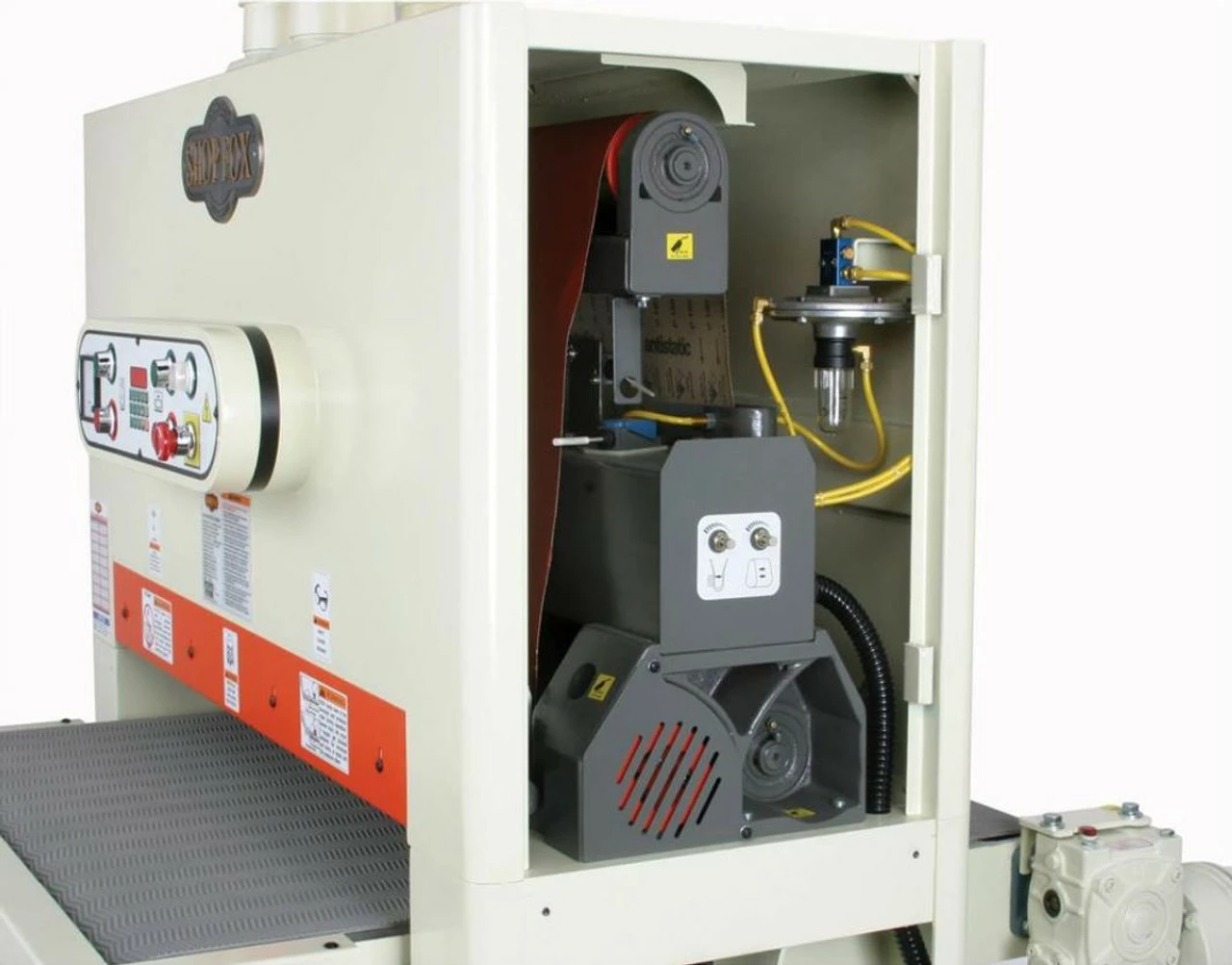 Door builders and cabinet shops will love the extra capacity of this 37″ wide-belt sander. With a 15 HP 3-phase sanding motor, this wide-belt is built for daily industrial use with features such as a heavy-duty steel cabinet, pneumatic belt oscillation, and a built-in air filter/regulator. The digital control pad automates table adjustments and is accurate to 0.005″. Also, the variable-speed conveyor, adjustable oscillation controls, and adjustable graphite/felt platen easily allow the operator to find the perfect combination of settings to achieve soft, smooth finishes on all types of wood. Certified to CSA and UL standards.