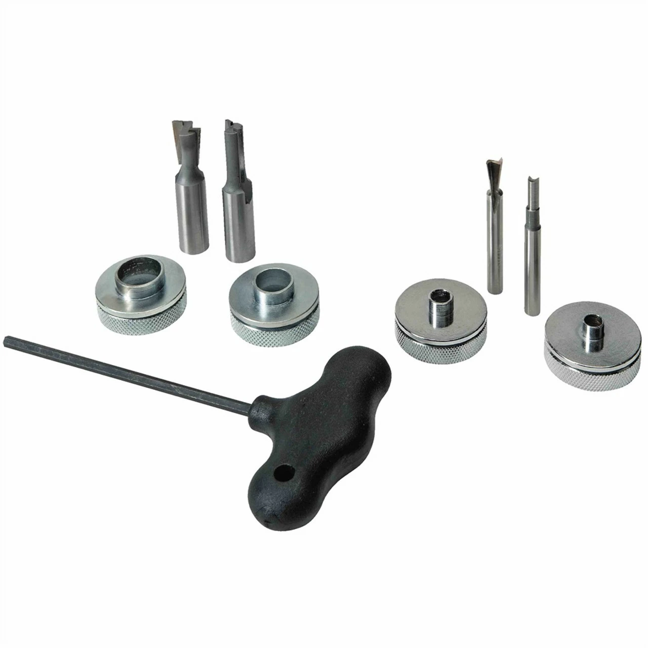 Included with jig: templates, wrench, two lock nuts, and instruction manual. Machined aluminum templates help provide superior cutting accuracy and long term durability